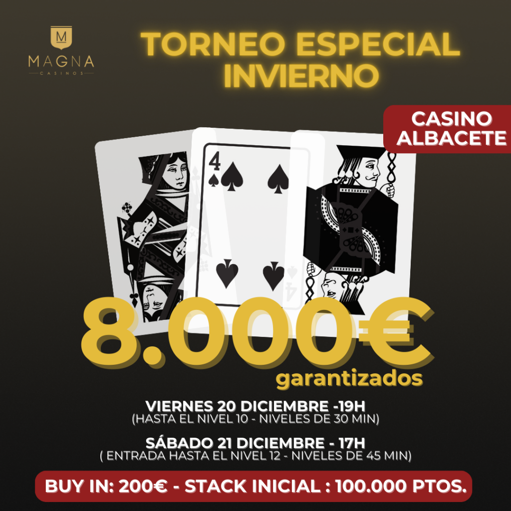 En Magna Casinos vamos a celebrar la llegada del invierno por todo lo alto. Organizamos un torneo especial de póker muy especial de dos días con 8.000€ garantizados.